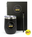 Este conjunto exclusivo inclui copo térmico, caderno e caneta, perfeito para quem busca funcionalidade no dia a dia. Ideal para uso pessoal, no trabalho ou como brinde corporativo sofisticado.